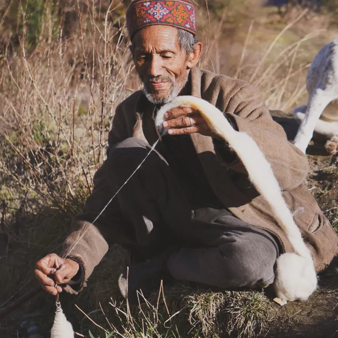 羊飼いと共にヒマラヤを歩き、毛を刈り、原毛を洗うお湯を沸かす薪を集めるところから、