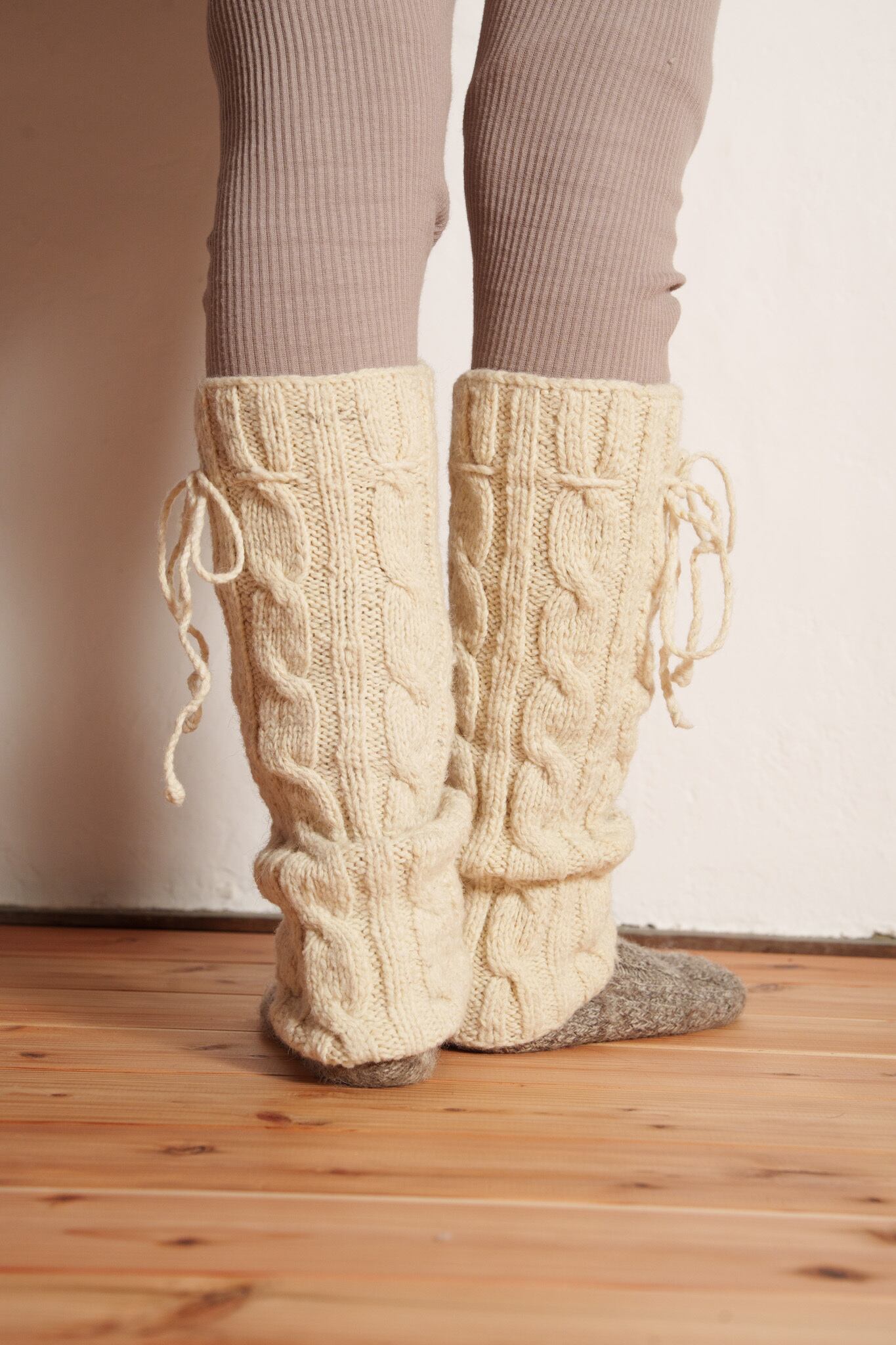 ・ゴムや化学的な調整具を使っていない為、一般的なレッグウォーマーのような伸び縮みをしません。