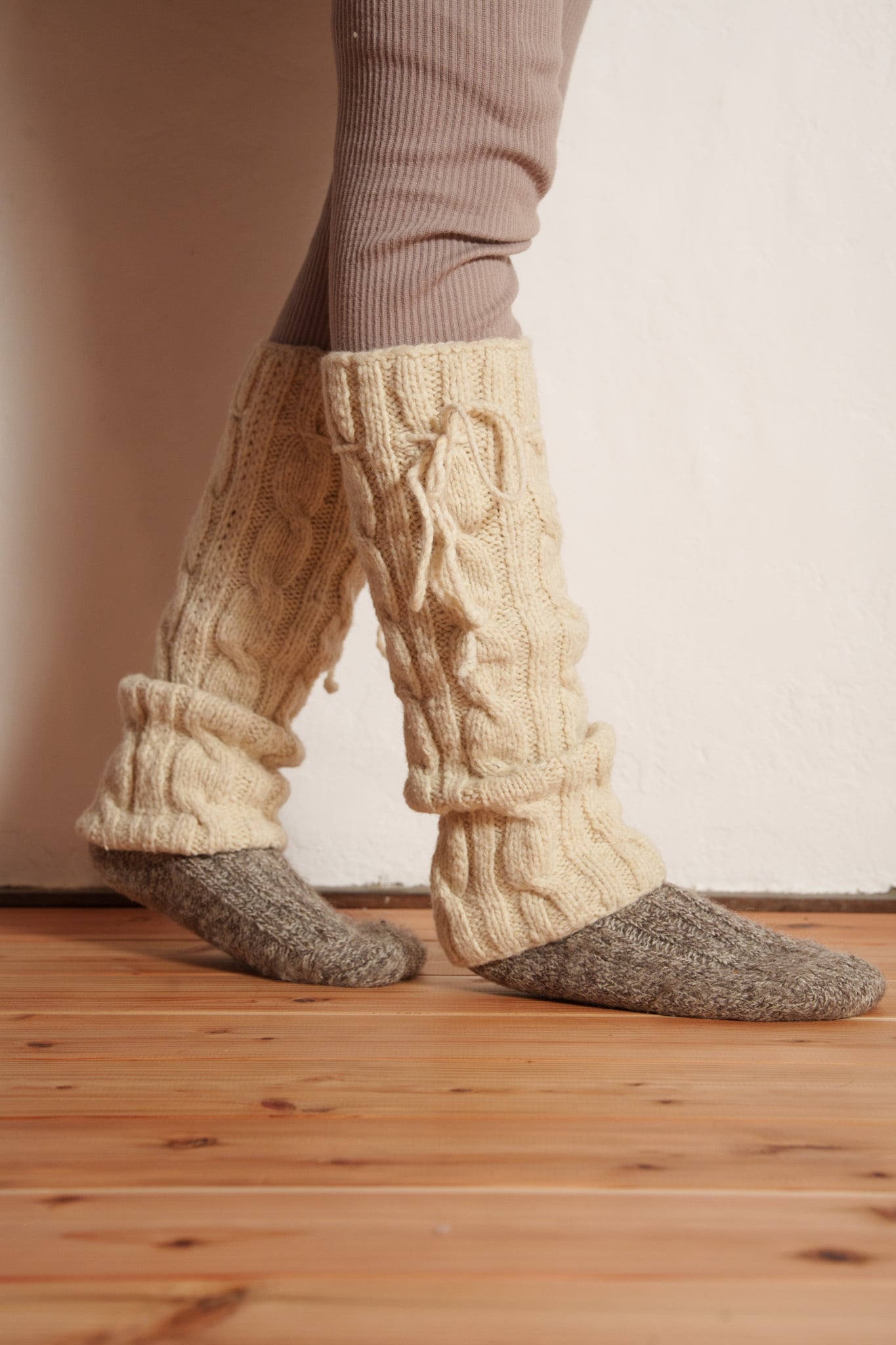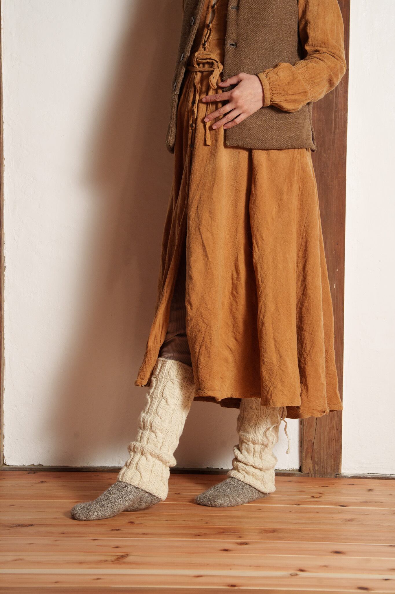 手紡ぎの糸は空気を含むので6本重ねることで保温性・断熱性・耐久性がさらに増し、足を通した瞬間”贅沢”なフィット感や人の手で包まれるような温もりを感じると思います。