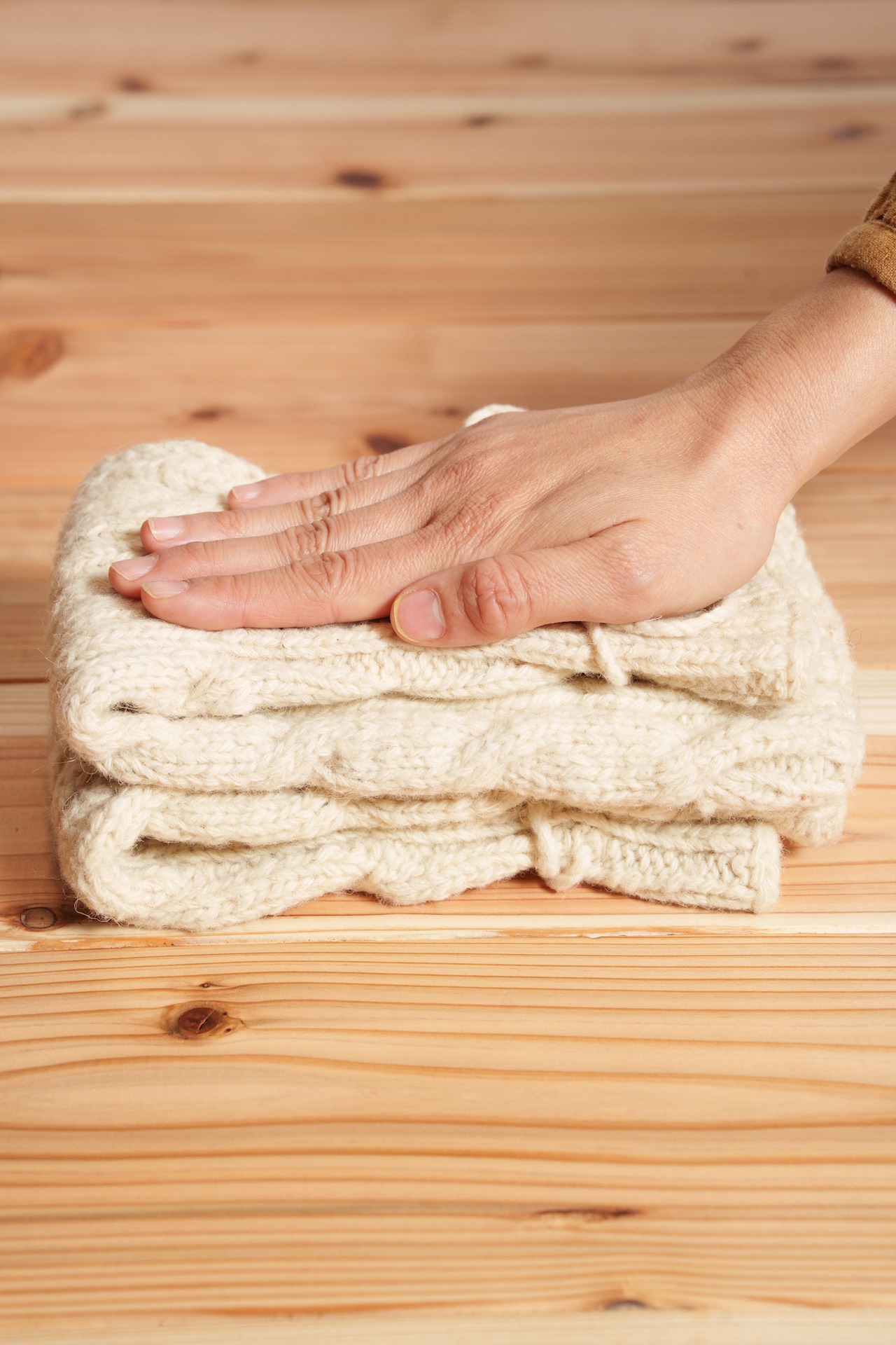 ・ウールニットを収納されるときは、同封のコットンバッグに入れて樟脳や香木ハーブなどで防虫してください。