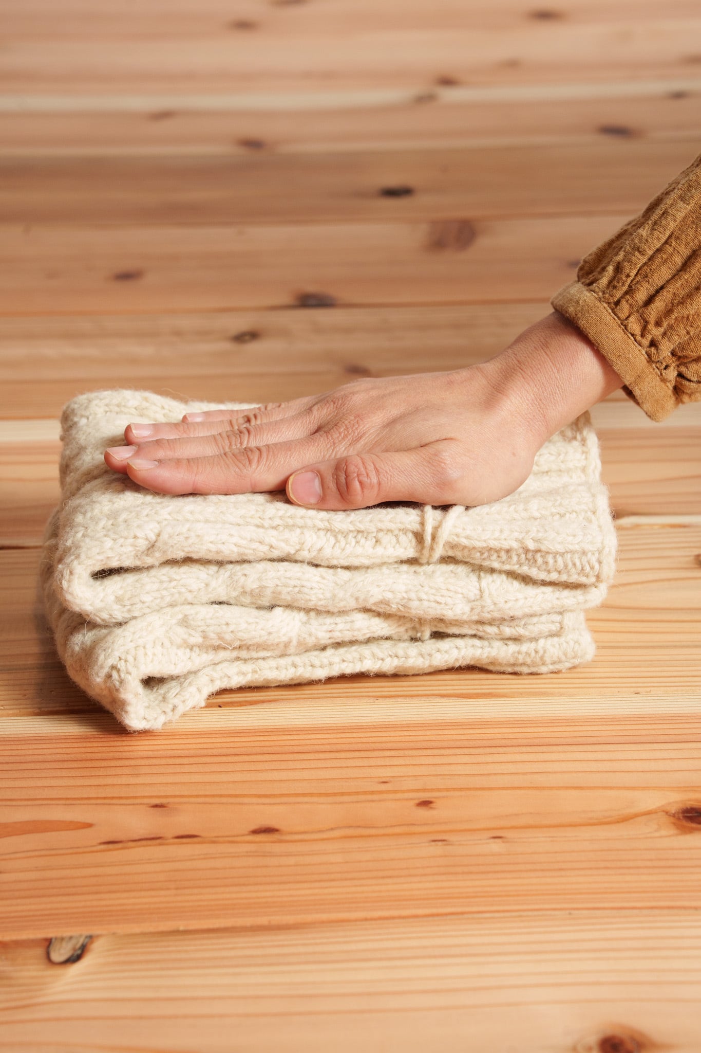 ・ウールニットを収納されるときは、同封のコットンバッグに入れて樟脳や香木ハーブなどで防虫してください。