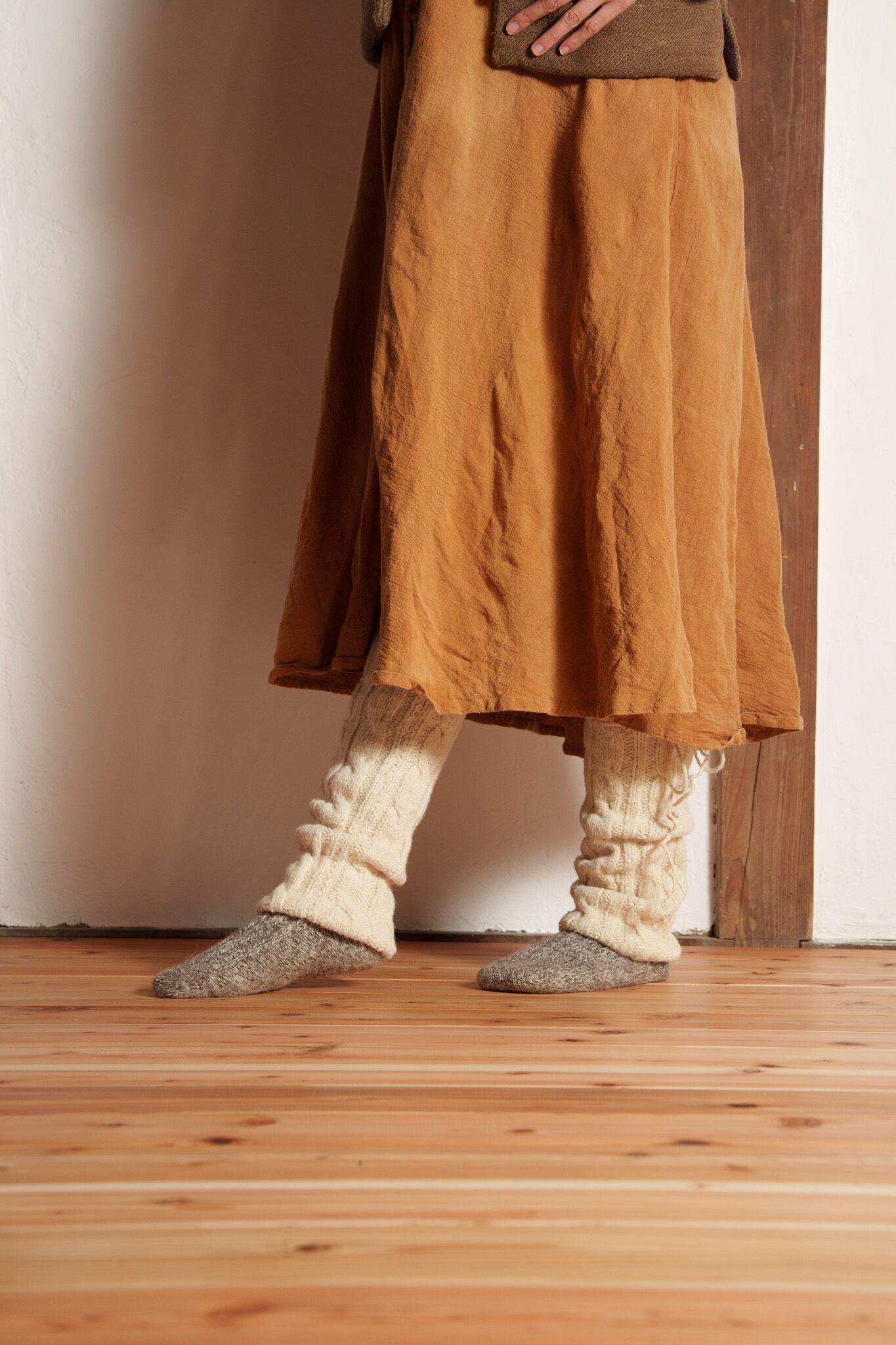 手紡ぎの糸は空気を含むので6本重ねることで保温性・断熱性・耐久性がさらに増し、足を通した瞬間”贅沢”なフィット感や人の手で包まれるような温もりを感じると思います。