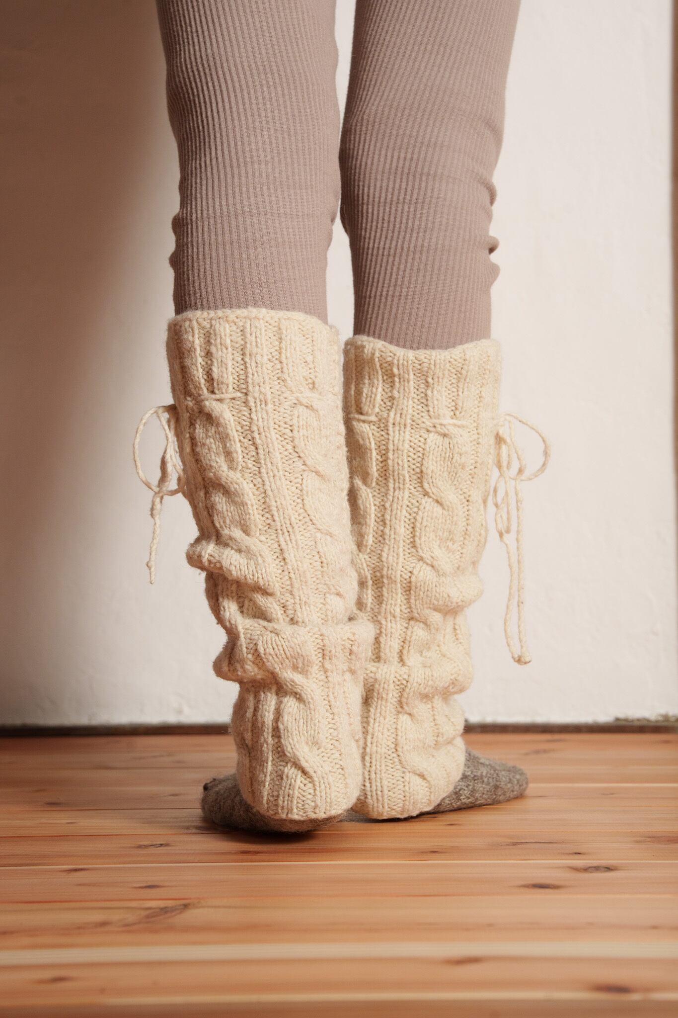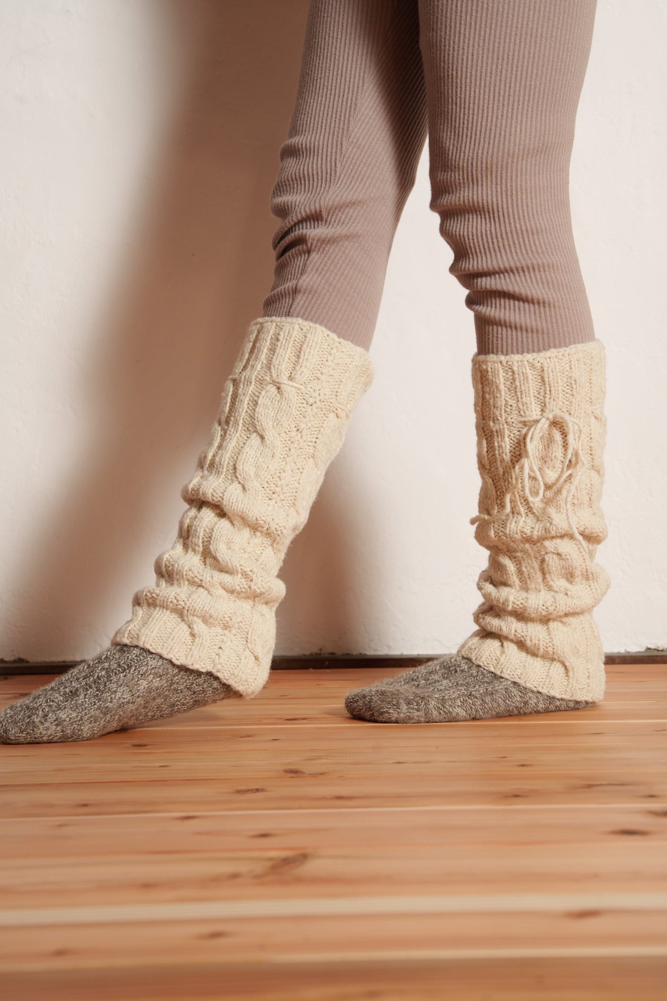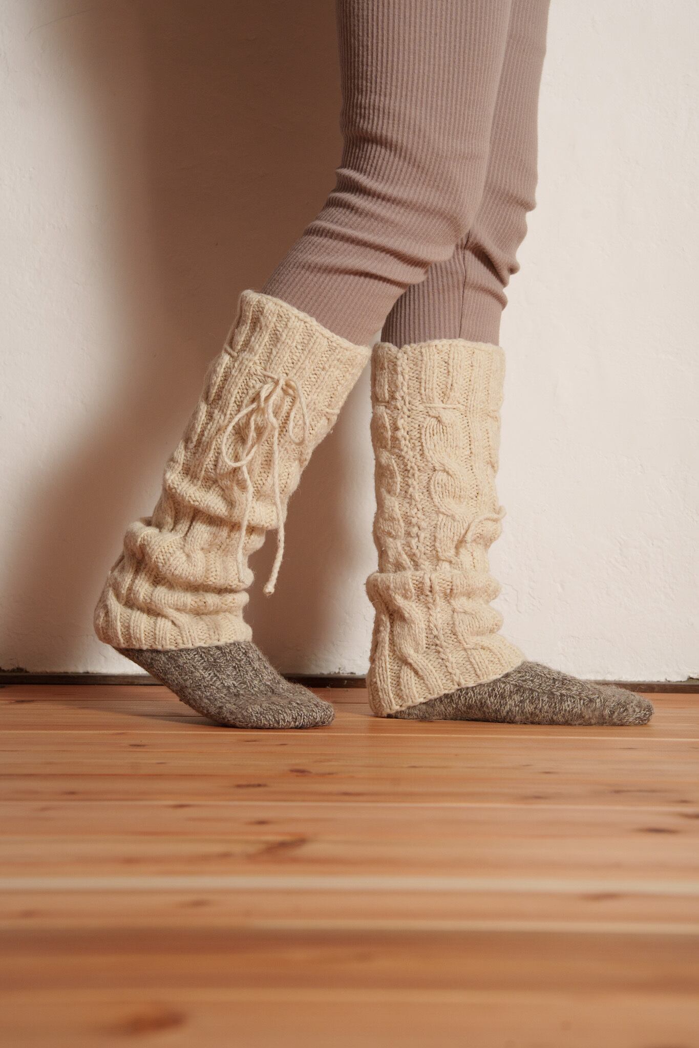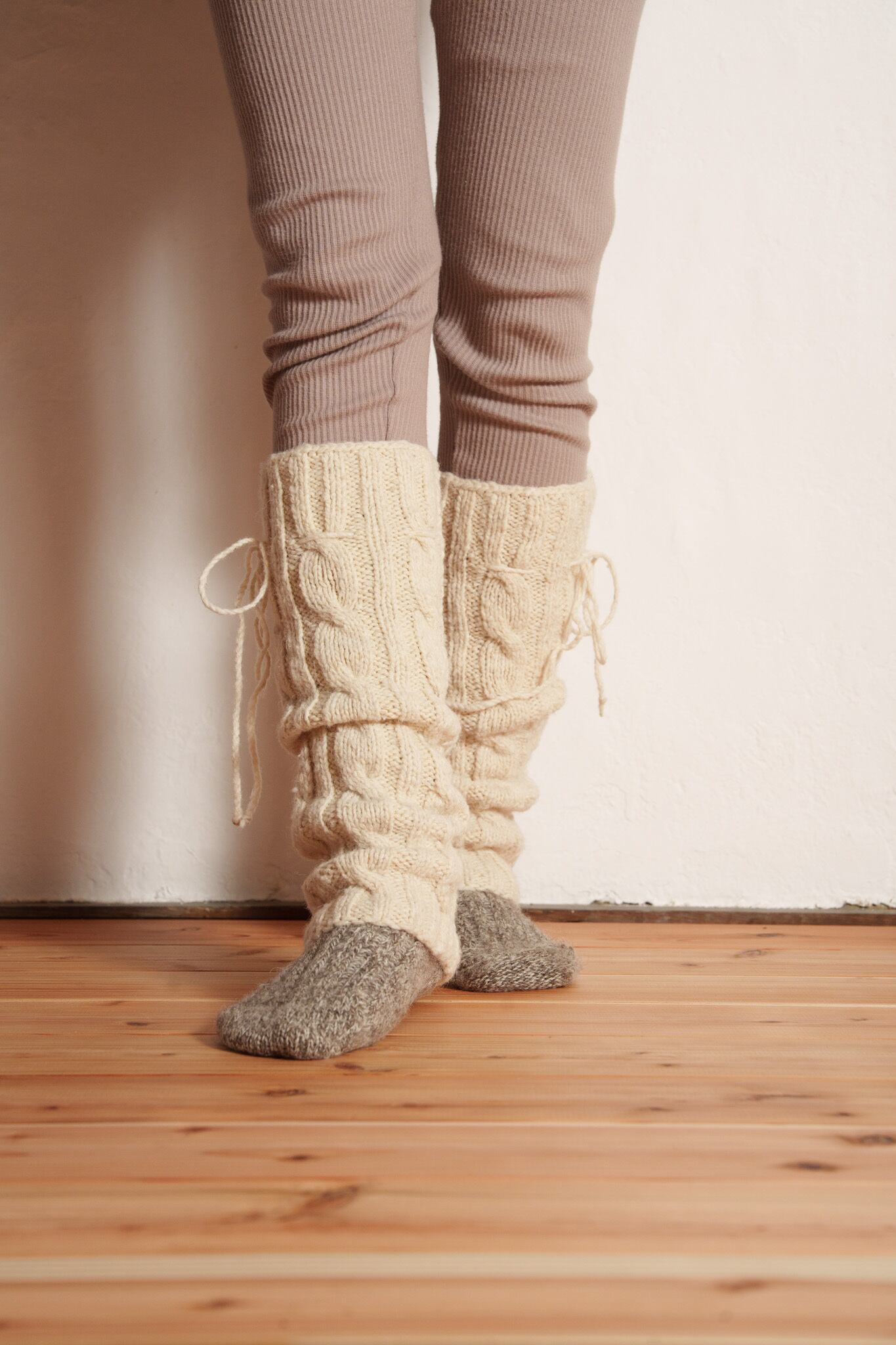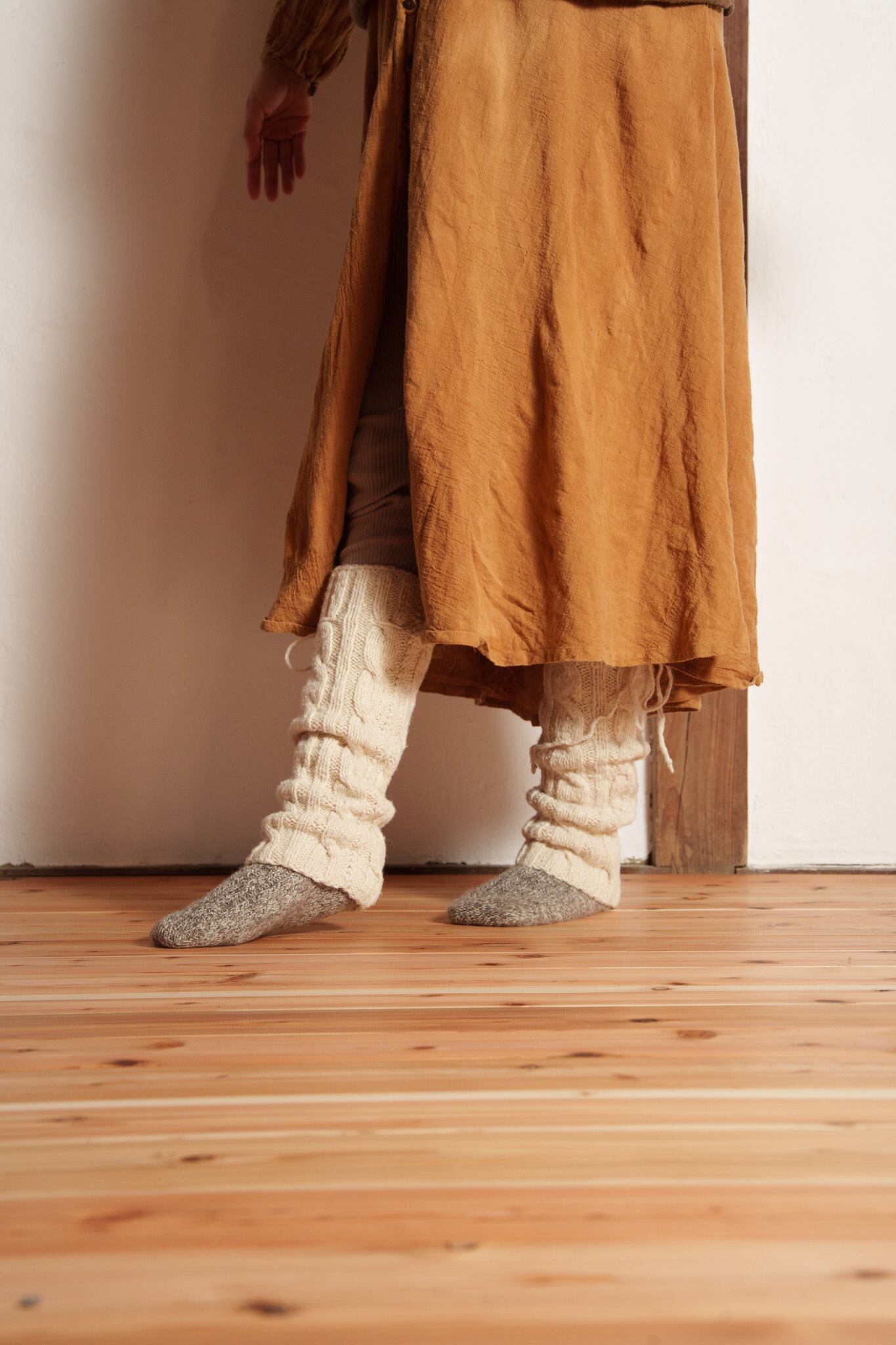 手紡ぎの糸は空気を含むので6本重ねることで保温性・断熱性・耐久性がさらに増し、足を通した瞬間”贅沢”なフィット感や人の手で包まれるような温もりを感じると思います。