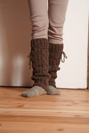 ・ゴムや化学的な調整具を使っていない為、一般的なレッグウォーマーのような伸び縮みをしません。
