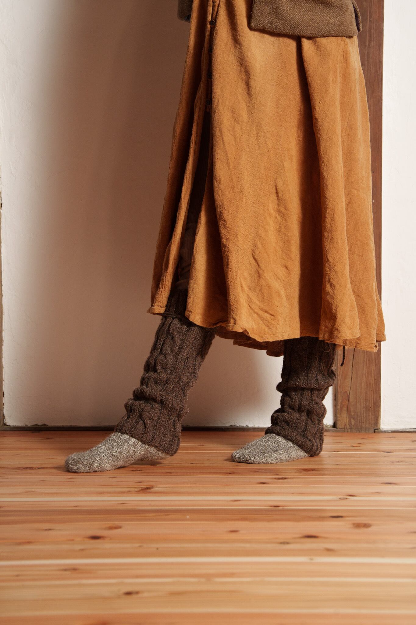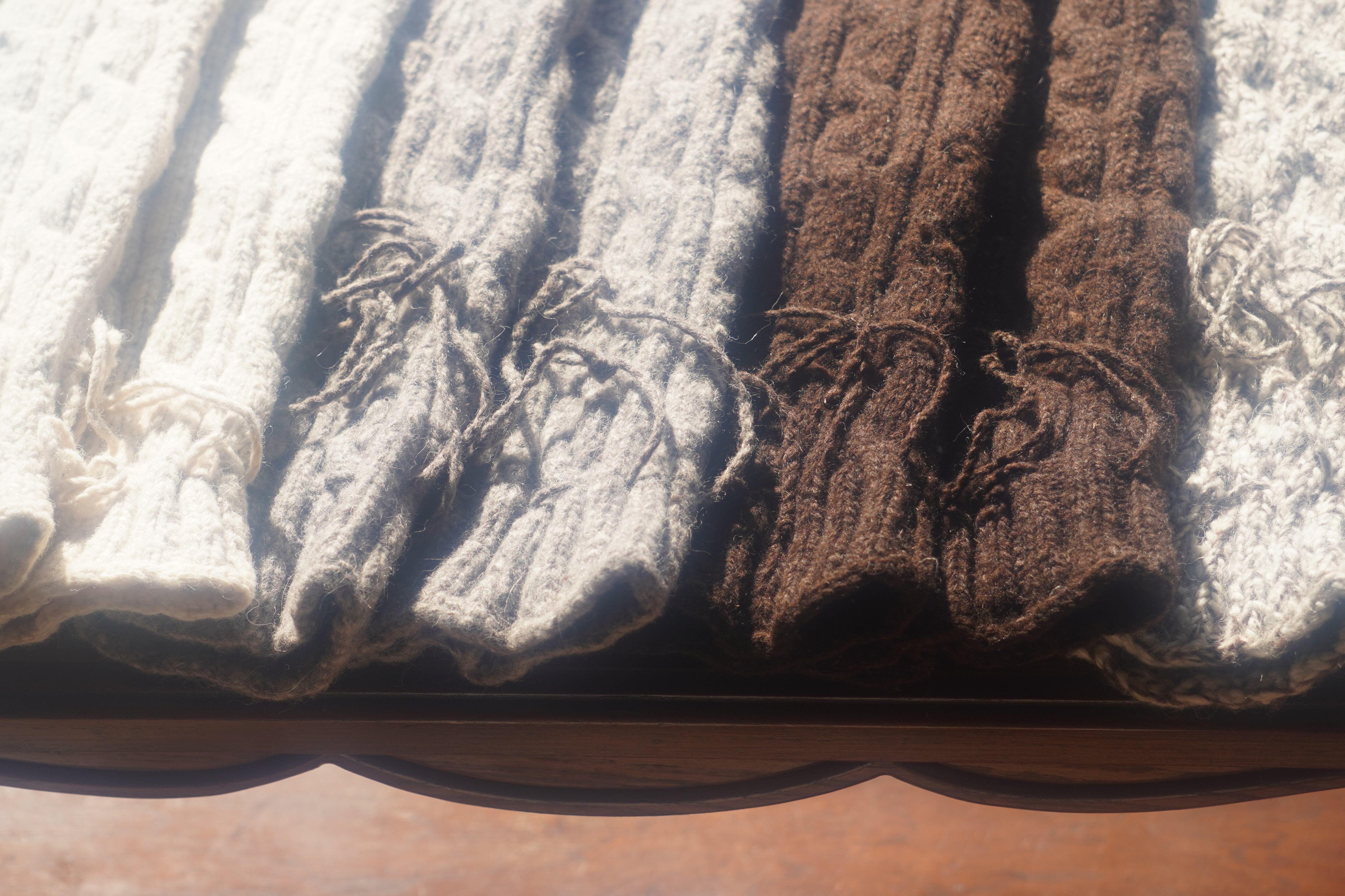 手紡ぎの糸は空気を含むので6本重ねることで保温性・断熱性・耐久性がさらに増し、足を通した瞬間”贅沢”なフィット感や人の手で包まれるような温もりを感じると思います。