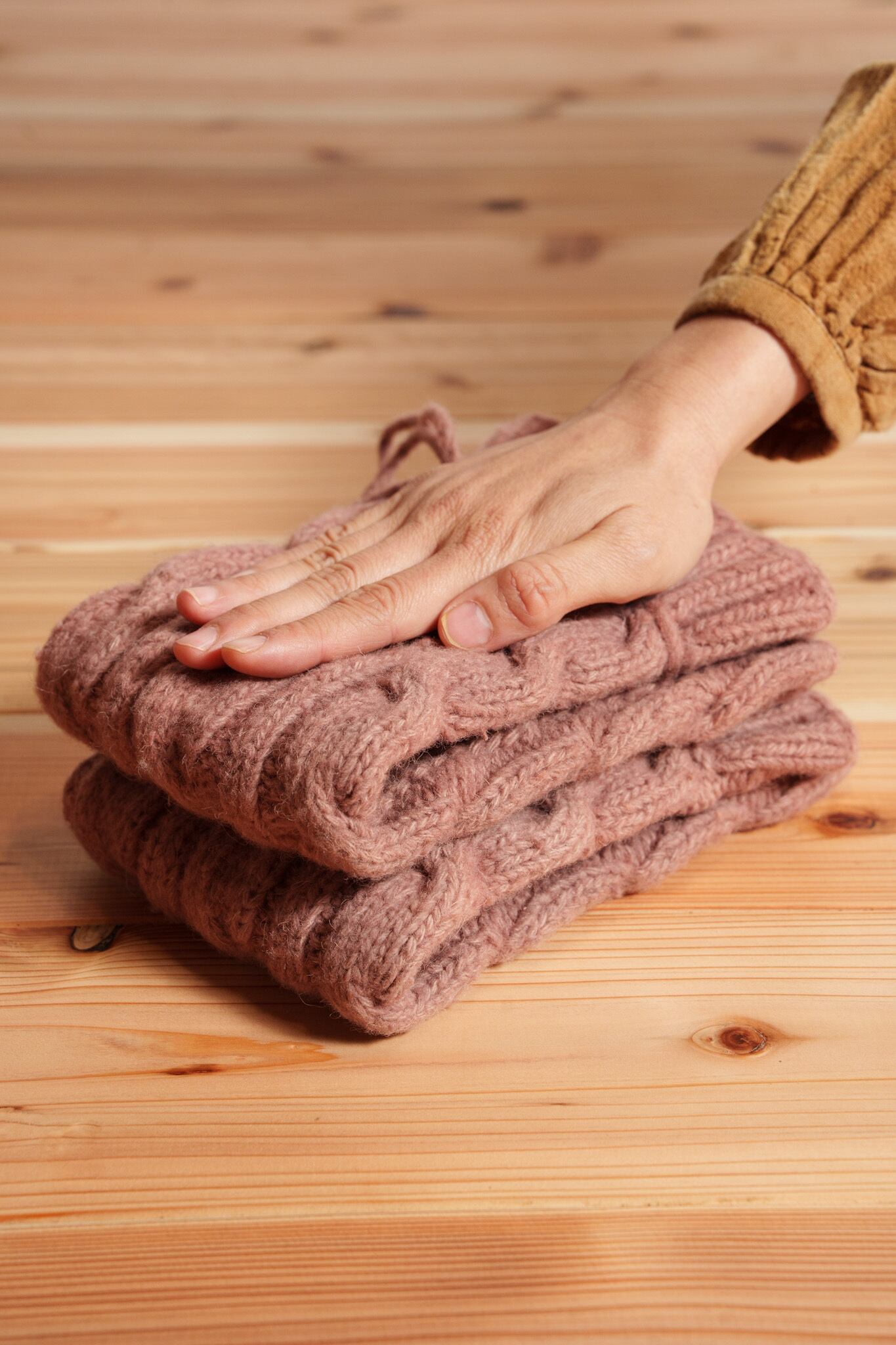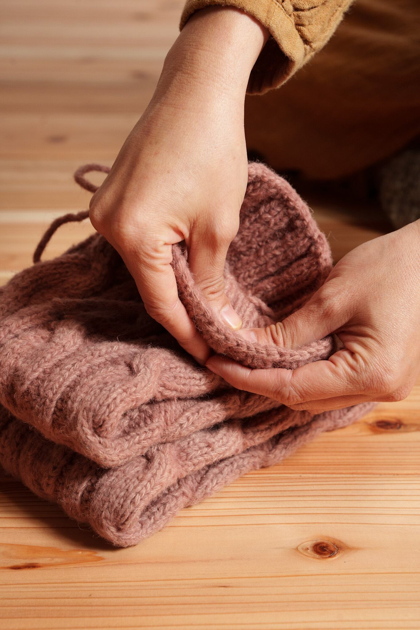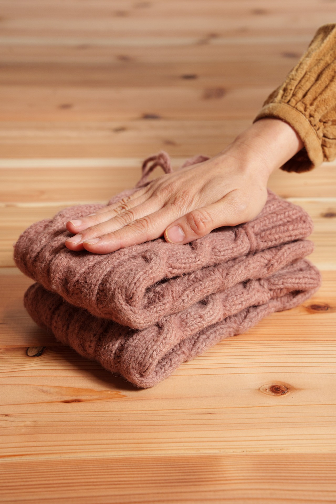 ・ウールニットを収納されるときは、同封のコットンバッグに入れて樟脳や香木ハーブなどで防虫してください。