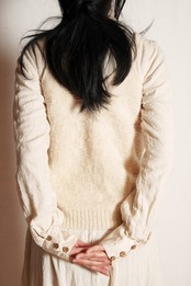 ③その上に、シャツやワンピースを重ね着し、ウールのセーター。ウールのジャケットを着ます。