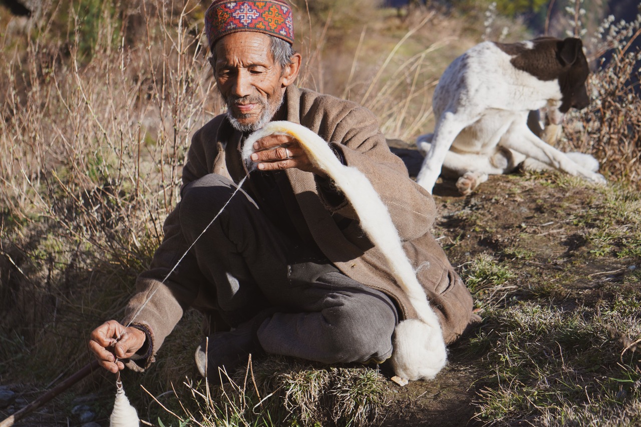 今日も羊飼いがヒマラヤを遊牧している。村の方が母から子へ受け継いだ技で、手仕事をしている。