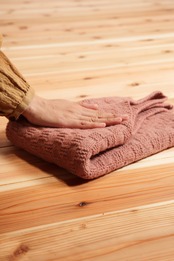 ・ウールニットを収納されるときは、同封のコットンバッグに入れて樟脳や香木ハーブなどで防虫してください。