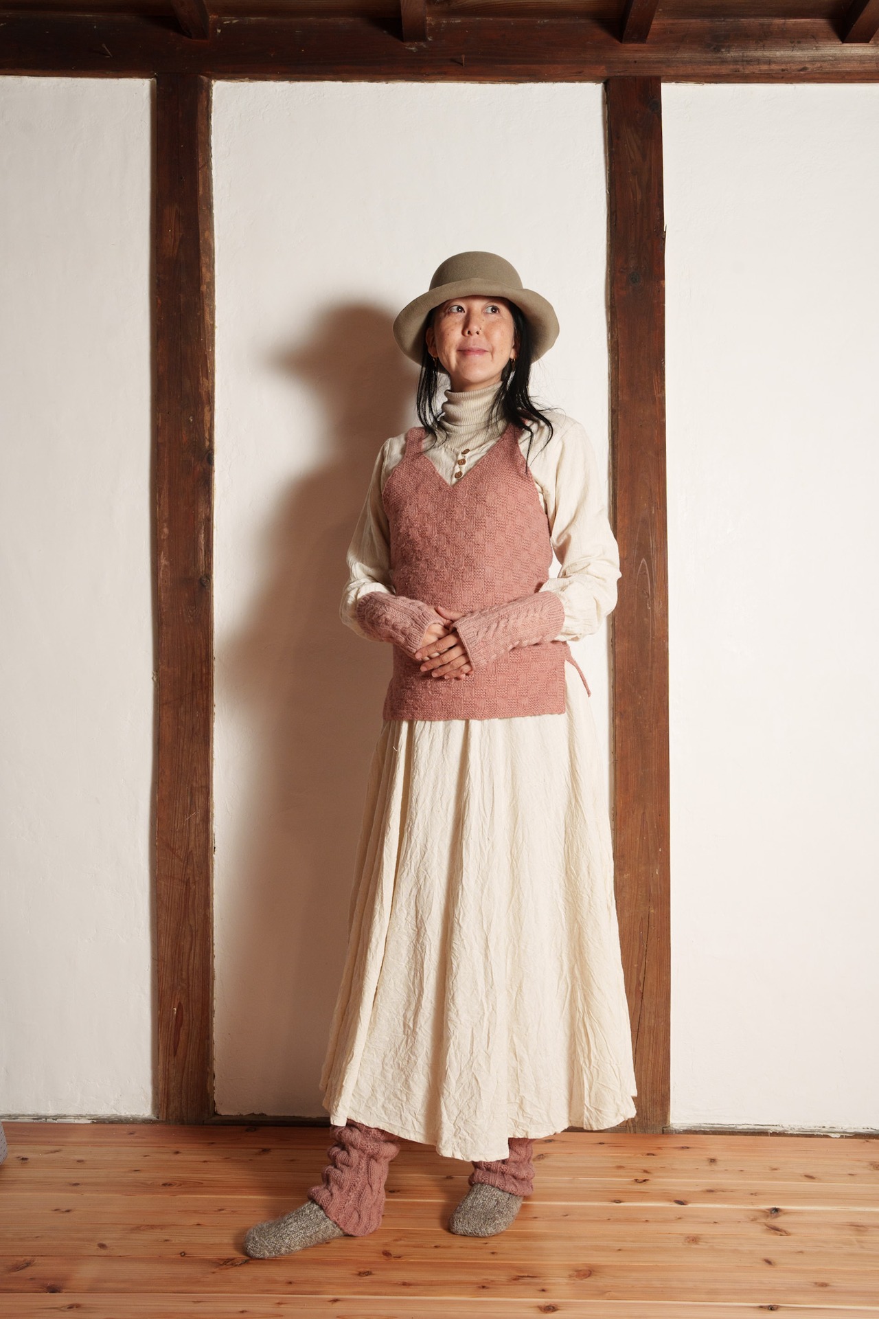 きなりで編まれたインナーセーターを染色家の「芦原美也子さん」が染めてくださいました。
